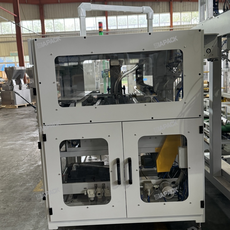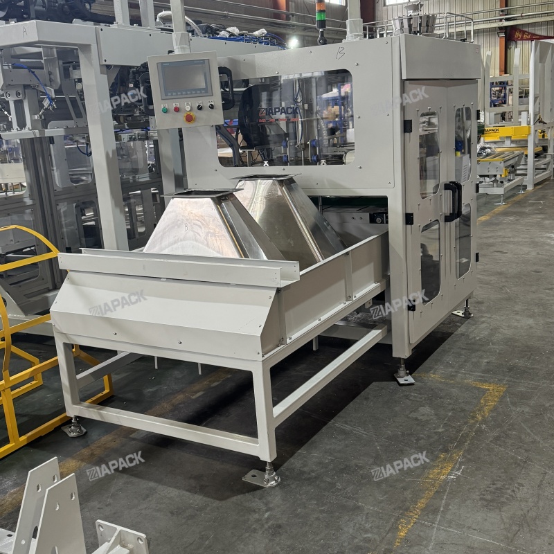 ఈ యూనిట్లో బ్యాగ్ నిల్వ బిన్, బ్యాగ్ తీసుకోవడం మరియు క్రమబద్ధీకరించే పరికరం, బ్యాగ్ లోడింగ్ రోబోట్, బ్యాగ్ బిగింపు మరియు అన్లోడింగ్ పరికరం, బ్యాగ్ పుషింగ్ పరికరం, బ్యాగ్ మౌత్ గైడ్ పరికరం, వాక్యూమ్ సిస్టమ్ మరియు నియంత్రణ వ్యవస్థ ఉంటాయి.