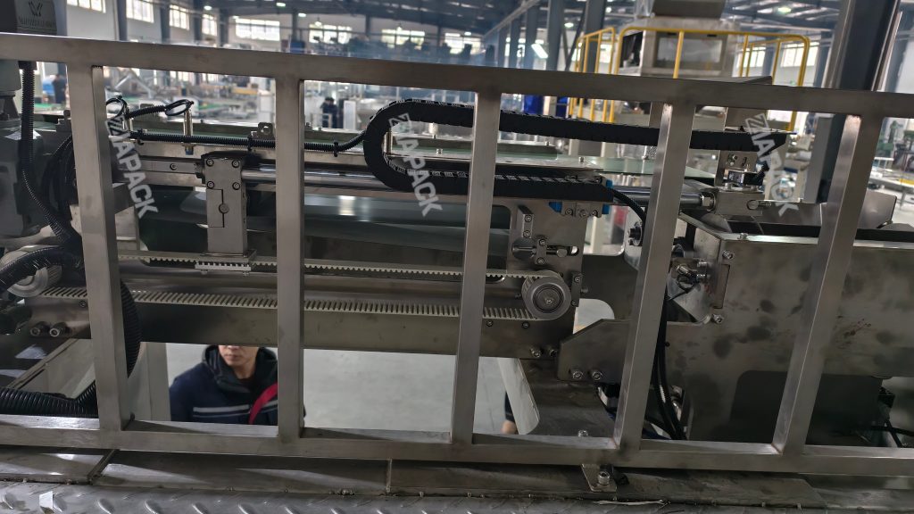 For secondary packaging (auto putting the small pouches into PP woven bag):